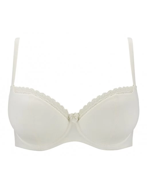 De Cleo Juna balconnet beha grote cupmaten heeft zachte gladde beha cups, afgewerkt met een broderie boordje voor een elegante en vrouwelijke look.