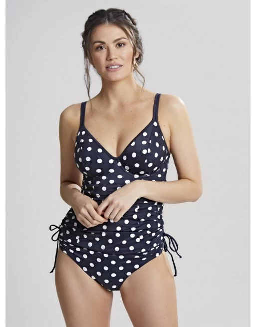 De Panache Swim Anya Riva spot tankini heeft een powermesh vleugels met ingewerkte bikini beha met een haak-en-oogsluiting, waardoor hij goed om het lichaam zit.