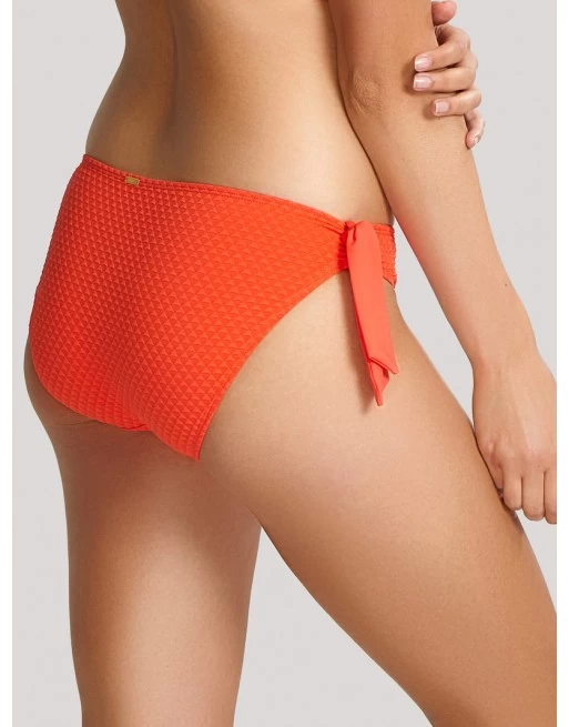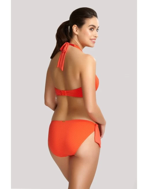 De levendige oranje textuur biedt een prachtig chique en slanke toevoeging aan deze lintjes bikini van Panache Swim Echo.