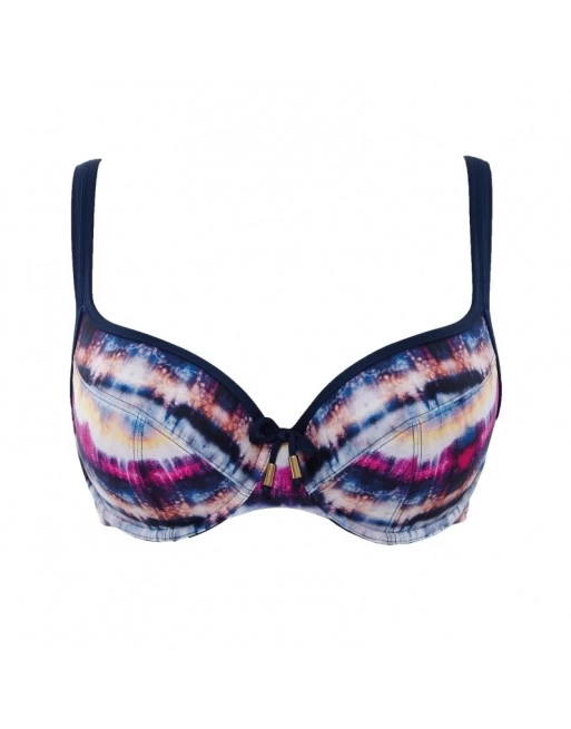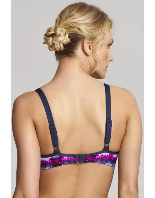 De Panache Swim balconnet bikini beha Elle is uitgevoerd in een fleurige pink multi print en afgewerkt met een contrasterende bies aan de bovenrand cup enschouderbandjes.