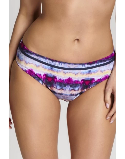 De Panache Swim bikini slip Elle is dit seizoen uitgevoerd in een fleurige pink multi print met een contrasterende bies.