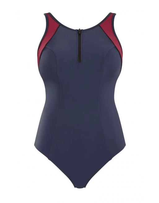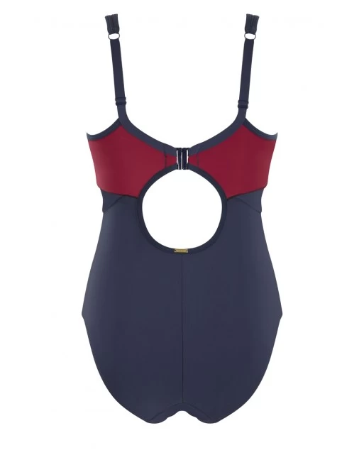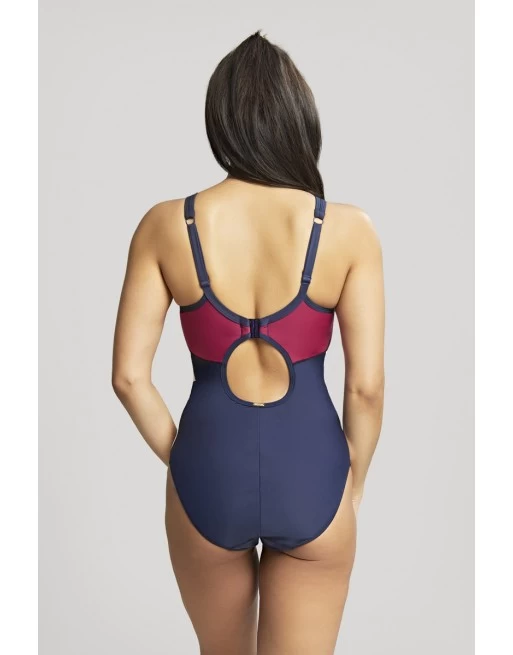 Het Panache Swim Limitless balconnet badpak omarmt de sporty chic trend en biedt een stijlvolle poolside-look in een marine/orchidee kleurstelling.