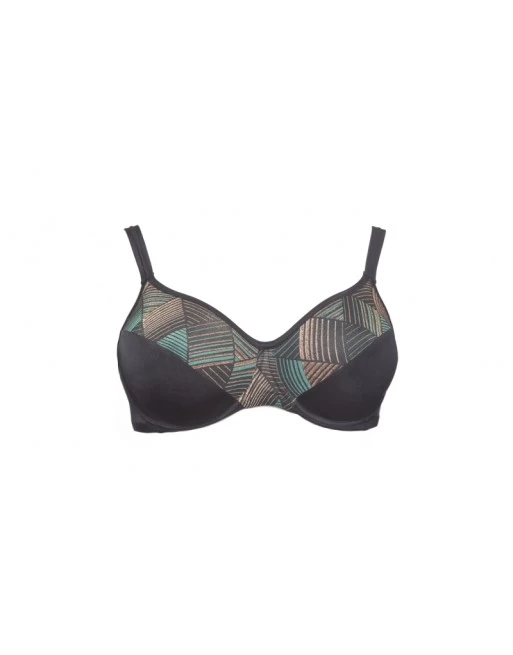 De Plaisir Harlequin bikini beha is uitgevoerd in een grafische print in combinatie met een klassiek zwarte basis.