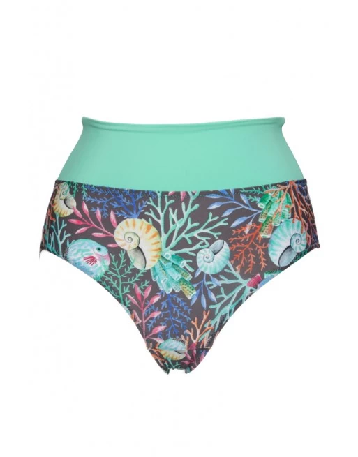 De Plaisir Océan bikini slip hoge taille is uitgevoerd in een frisse kleurrijke oceaan print.