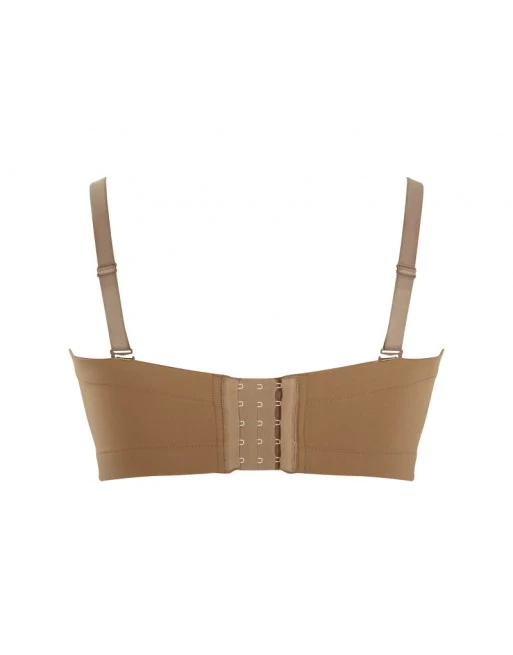 Licht vormgevende rug banden verstevigd met plastieken beentjes in de naden en in de sluiting bieden een compleet vertrouwen en comfort in deze strapless beha en dit tot een M cup.(naargelang de beha maat)