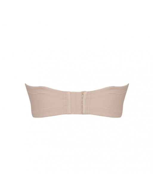 Licht vormgevende rug banden verstevigd met plastieken beentjes in de naden en in de sluiting bieden een compleet vertrouwen en comfort in deze strapless beha en dit tot een M cup.(naargelang de beha maat)